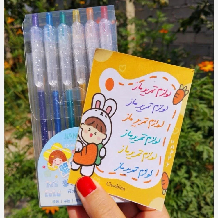 اینبار یه کار واقعا درخشان و زیبا براتون آوردم😍😍😍 از عطرش نگم براتون🥰😍 خودکار اکلیلی 6 رنگ🍓❤️ موقع نوشتن عطرش پخش میشه🤤 بچه ها کیفیتش عالیه با مارک های دیگه مقایسه نکنید جوهرش خیلی روانه✔️ وایب تابستونی داره🥺🤩