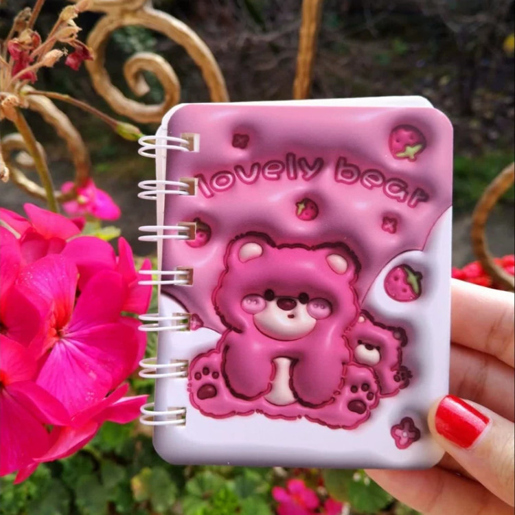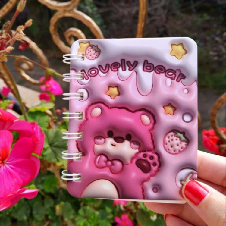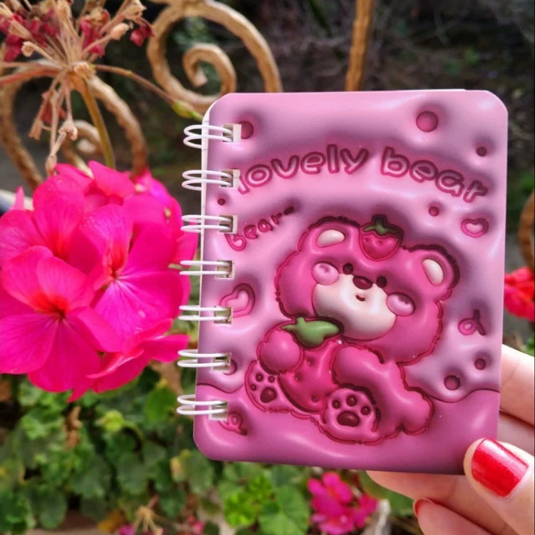 دفترچه یادداشت خرس و توت فرنگی 80 برگ فنر دوبل جلد مقوایی