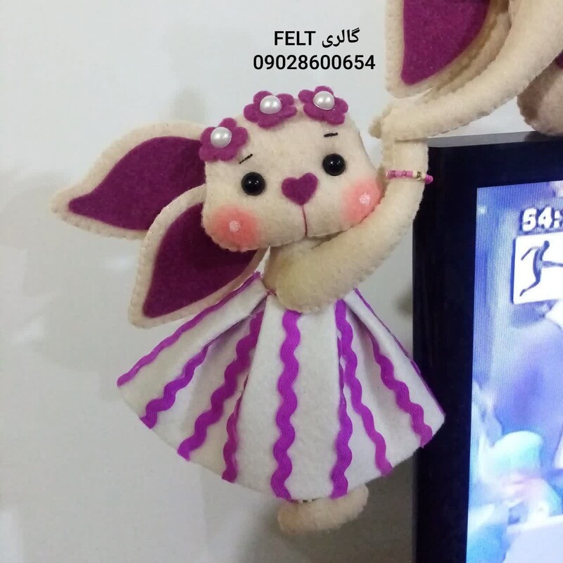 خرگوش تلوزیون نماد سال 1402 جنس نمدی سایز 18 سانتی رنگ پیازی کرمی قابل سفارش در رنگ های مختلف