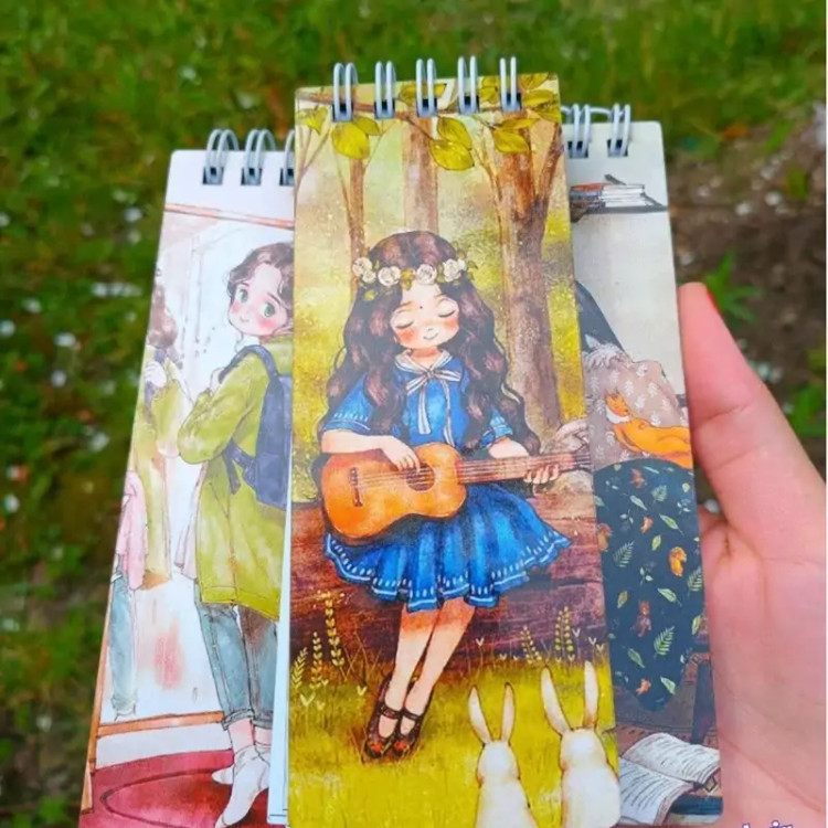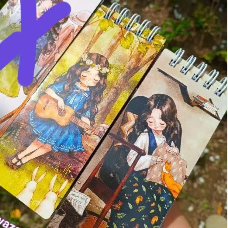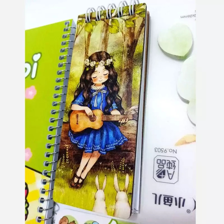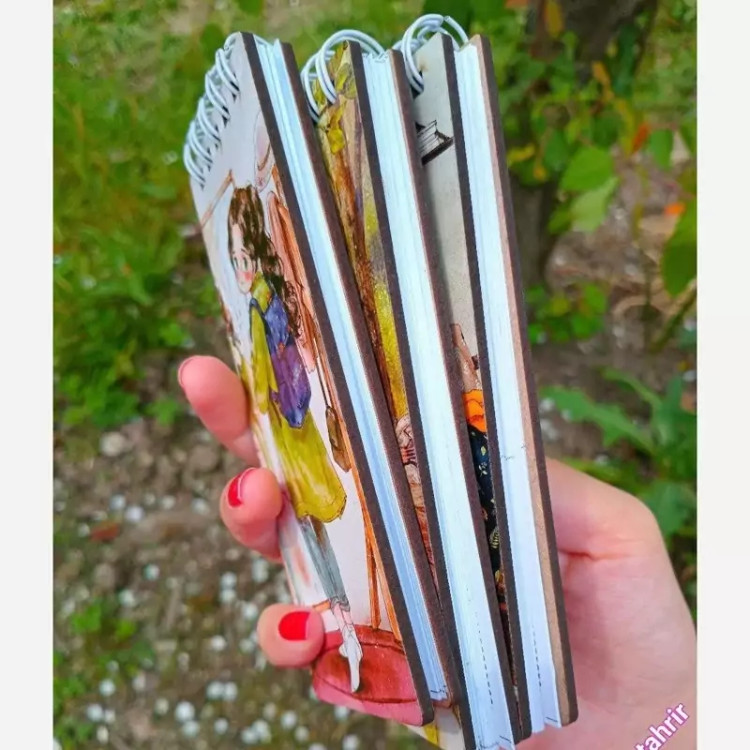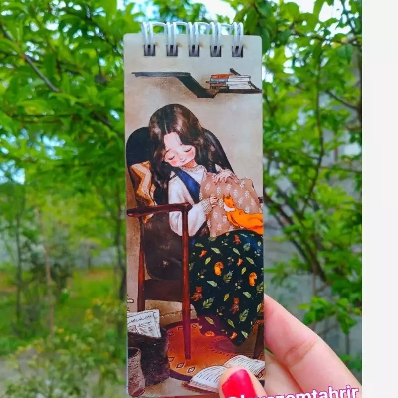 دفترچه جلد چوبی فنردوبل طرح دختر