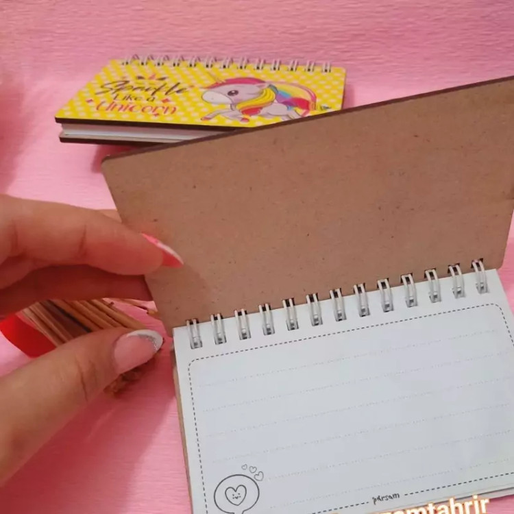دفترچه یونیکورن جلد چوبی فنردوبل