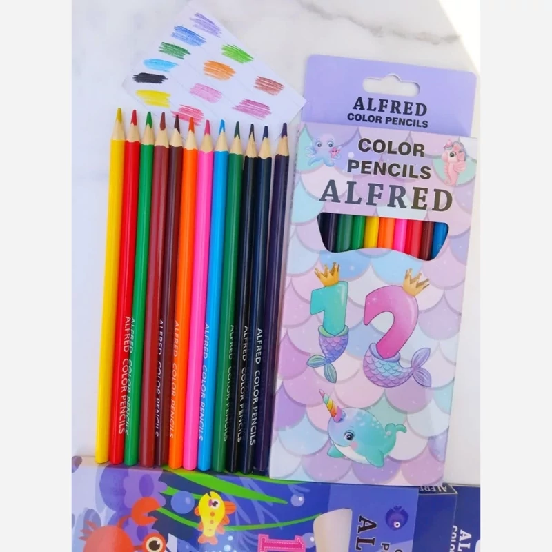 محصول جذابی که آوردیم😍😍😍😍😍 مدادرنگی 12 رنگ آلفرد تِم دریایی 🌊🐠🐟🐡🦈🧜 دخترونه و پسرونه فوقالعاده باکیفیت و نرم کشیده میشه رو کاغذ🥰 ✏️✏️✏️✏️✏️✏️✏️✏️
